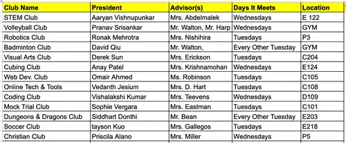 If you are, please refer to the table below for detailed information and see the Club Teacher - Mr. Heagle for questions.